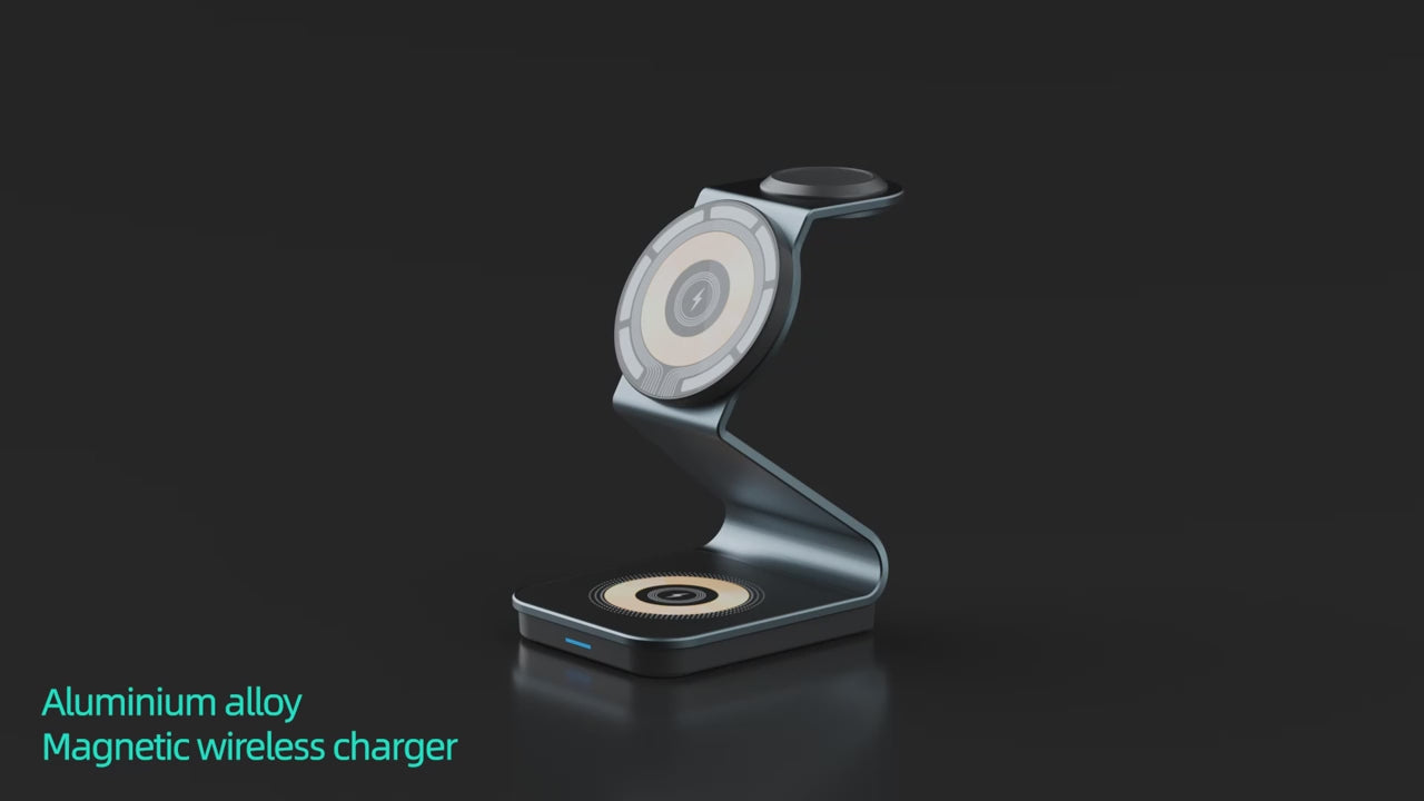 1 x Station de charge sans fil 3-en-1 en alliage d'aluminium